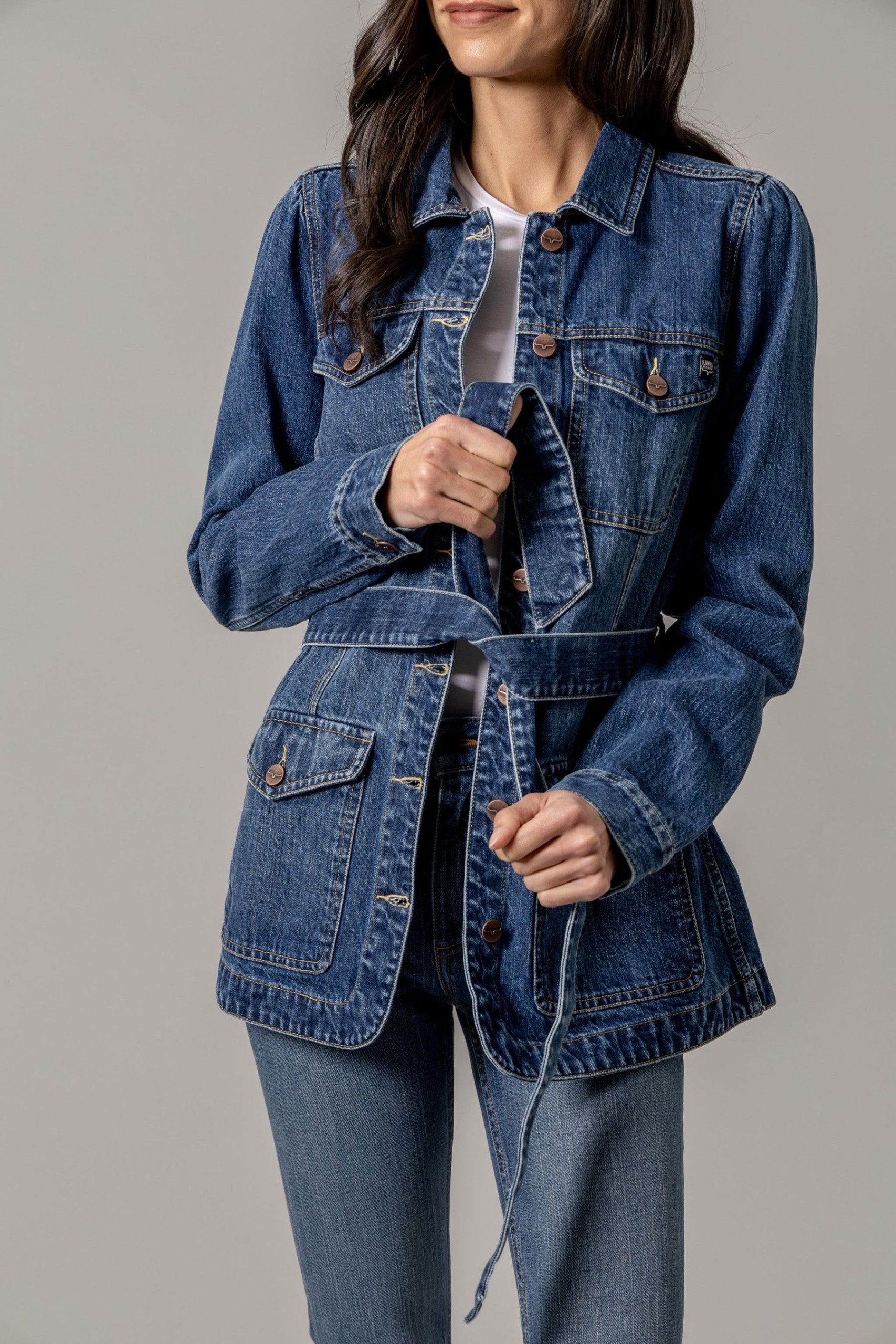 The Becca gives the timeless appeal of a genuine antique wash and is perfect for layering. The matching belt cinches in your waist for a more defined fit. This functional jacket features two chest pockets and two hand pockets. with sturdy brass buttons showcasing the iconic longhorn logo. This jacket is made for practicality and appeal. This jacket has a soft stretch for the perfect comfort.