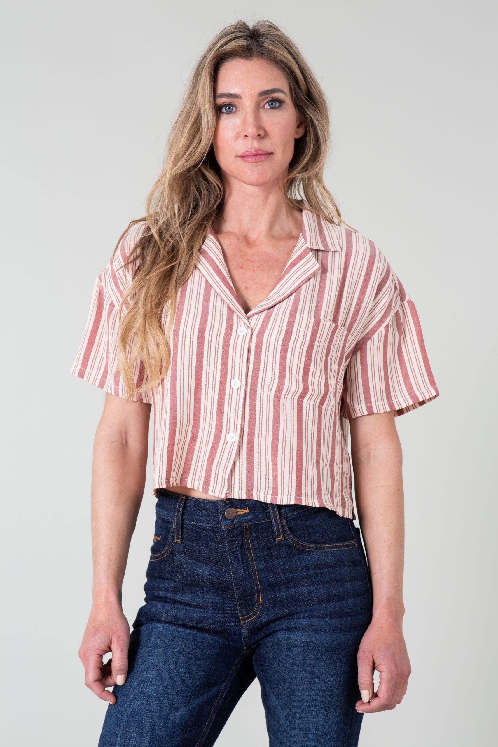 A slouchy. cropped cut gives this classic woven striped shirt a fresh look. The Ferris Striped Shirt is a warm weather staple that easily layers or looks great on its own.