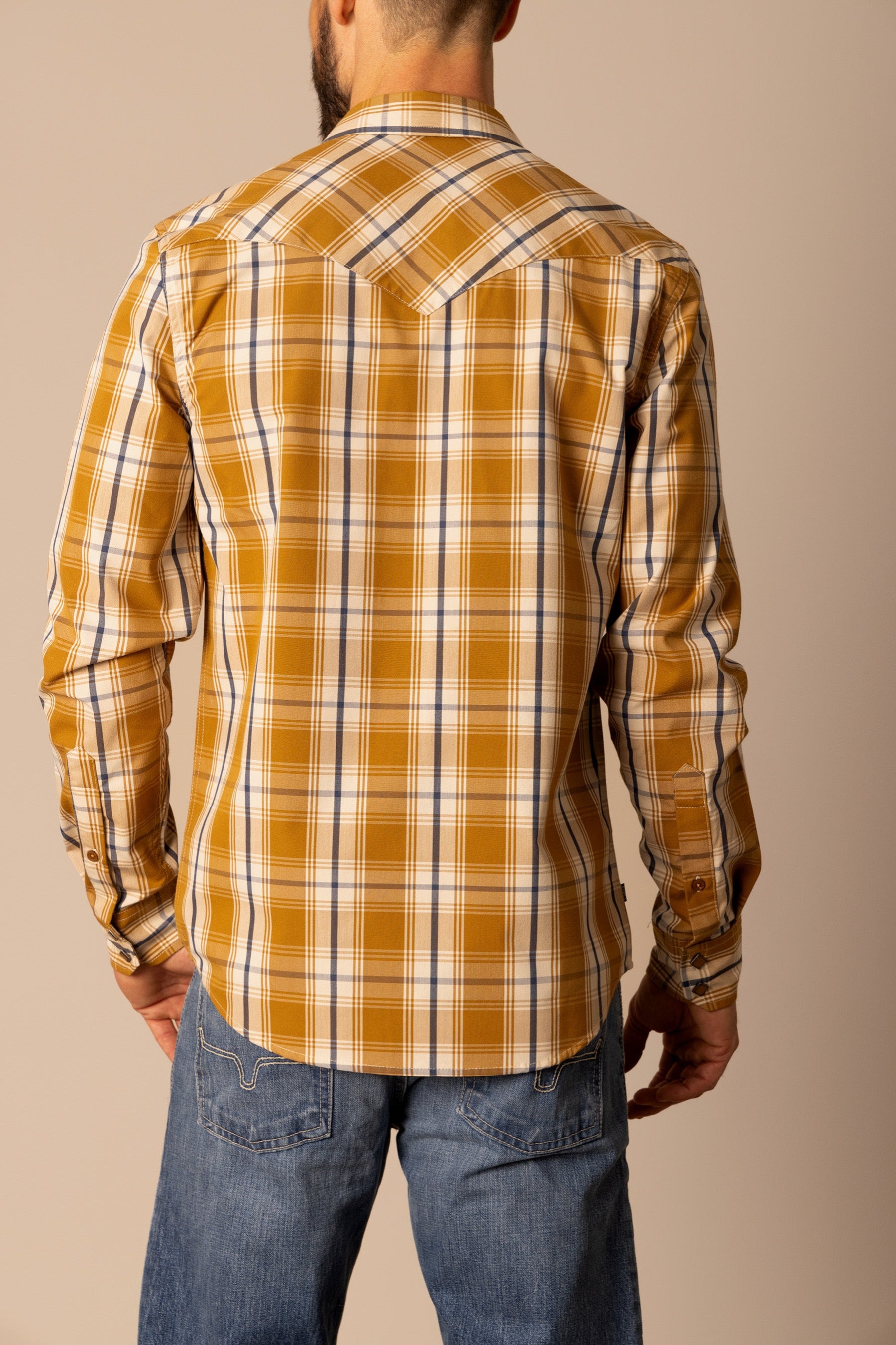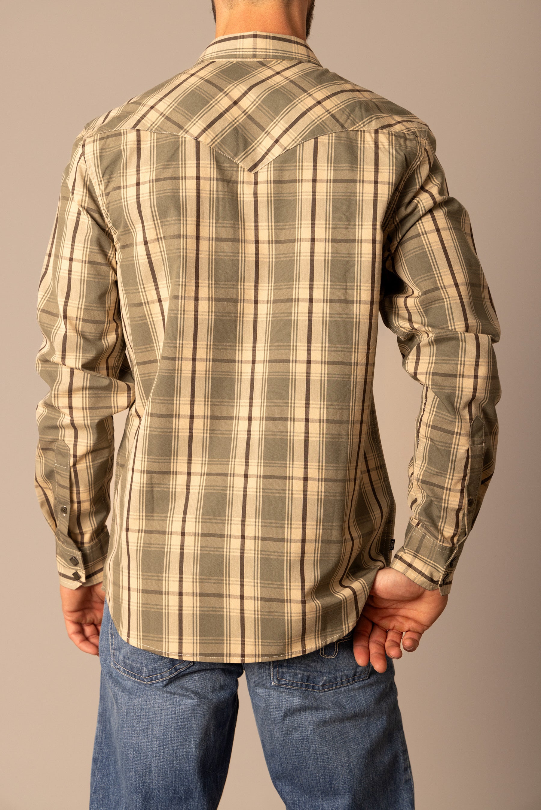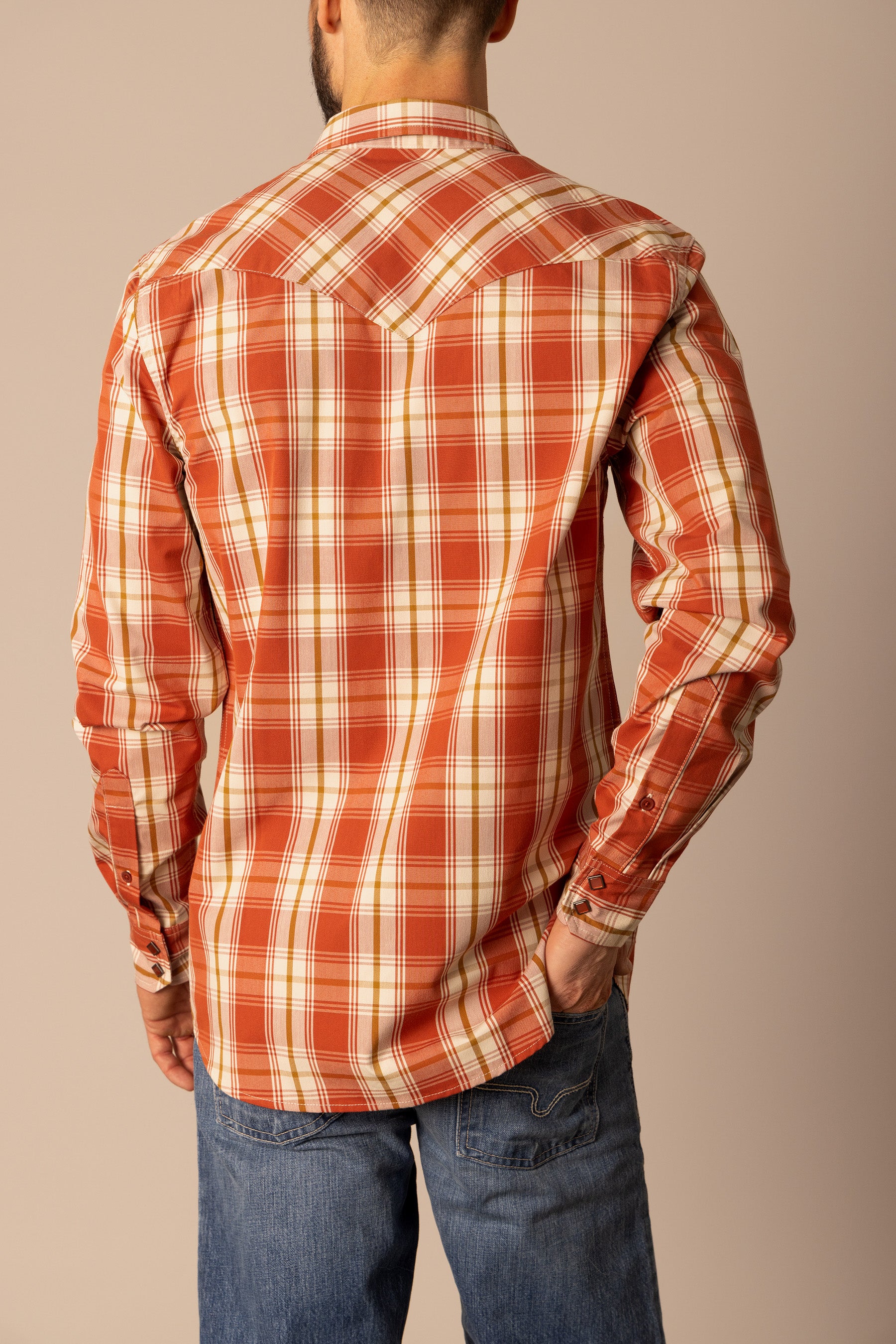 This western cut long sleeve shirt is a statement piece. Its large-scale plaid pattern commands attention without being overpowering. Designed with a keen eye for detail. the yoke. pockets. and front button placket feature a complementary cross-pattern. creating a cohesive and visually striking look. Built for both style and durability. this shirt is a testament to classic western craftsmanship. With Coolmax technology. the Frank is the perfect work shirt.