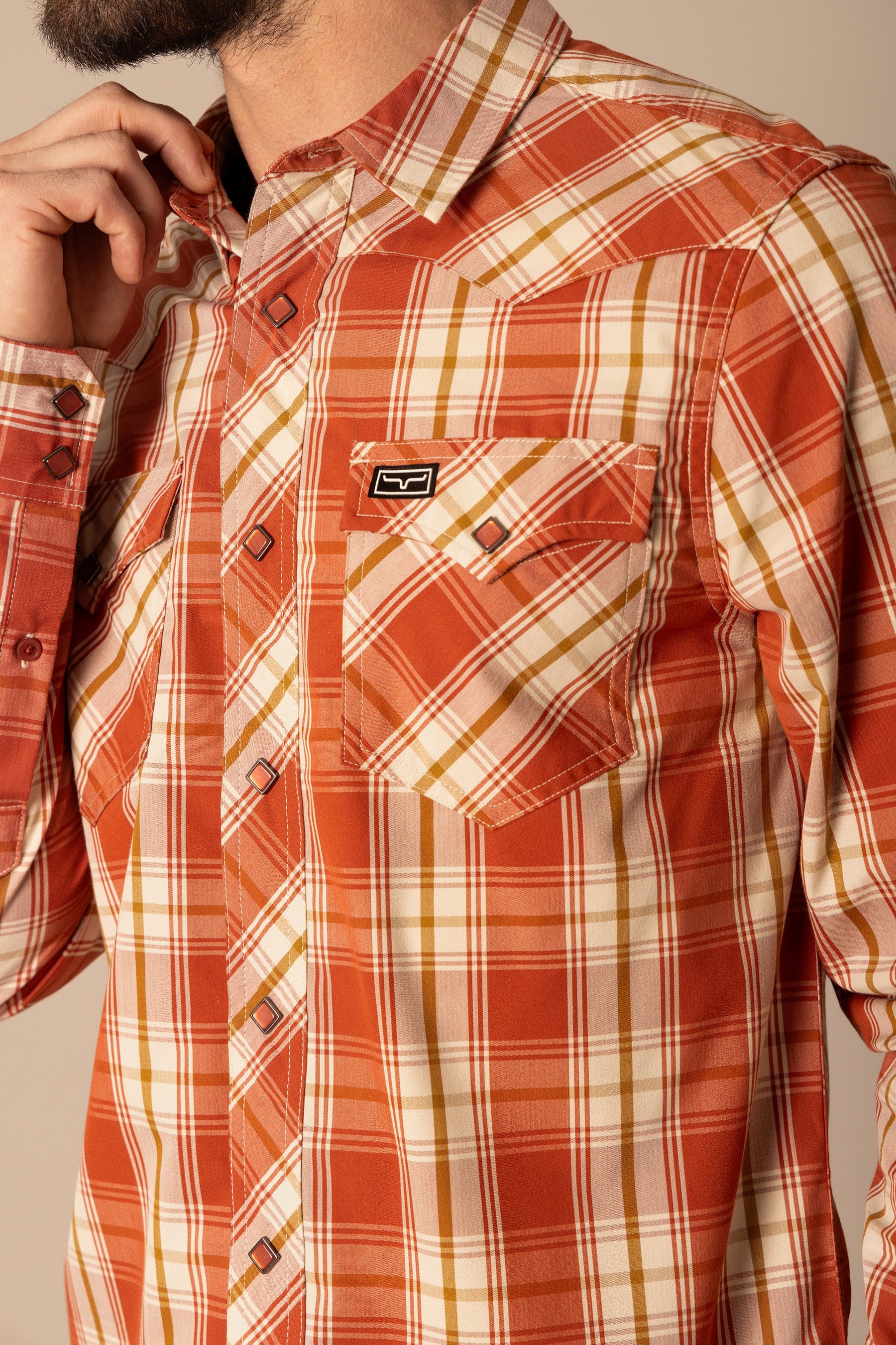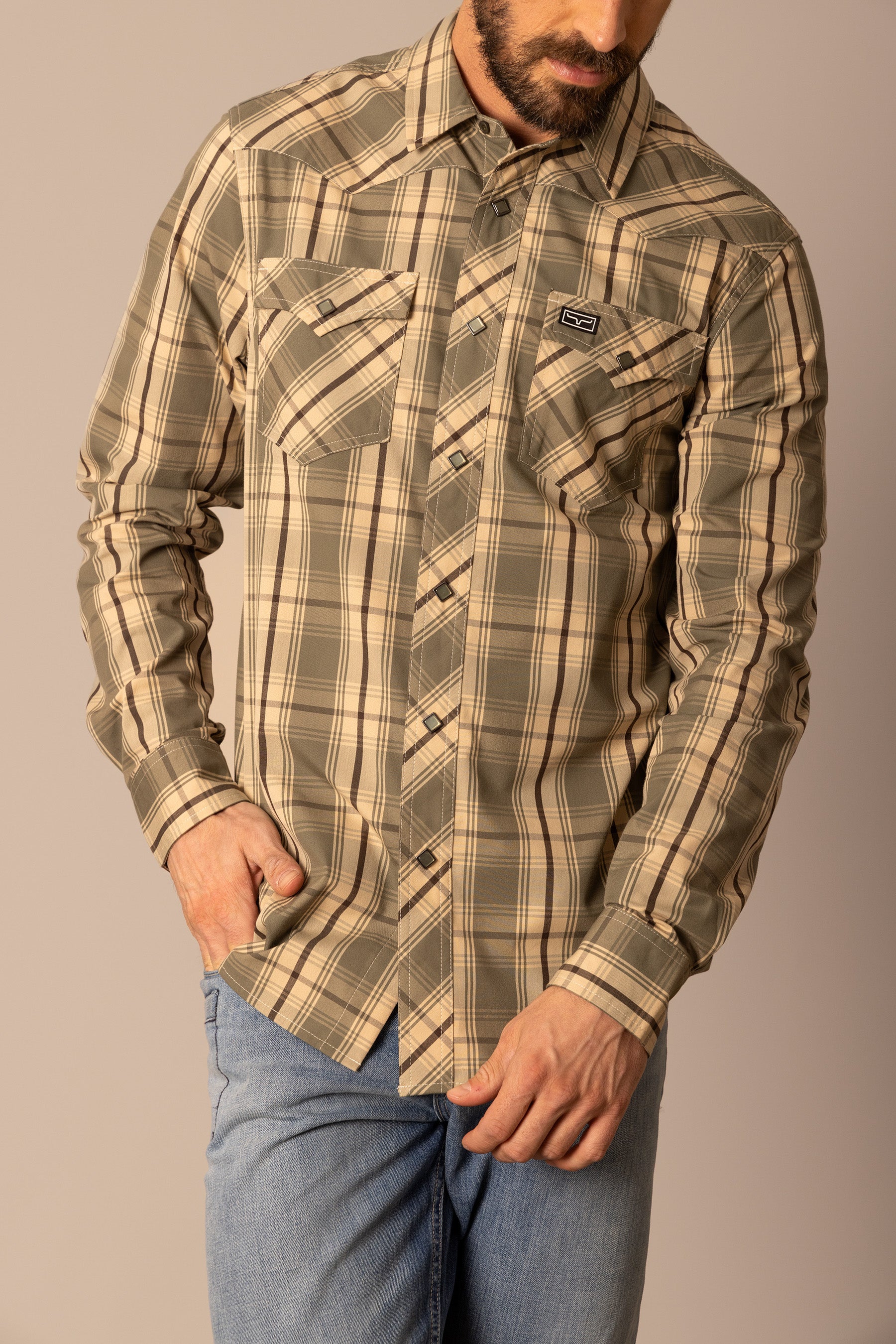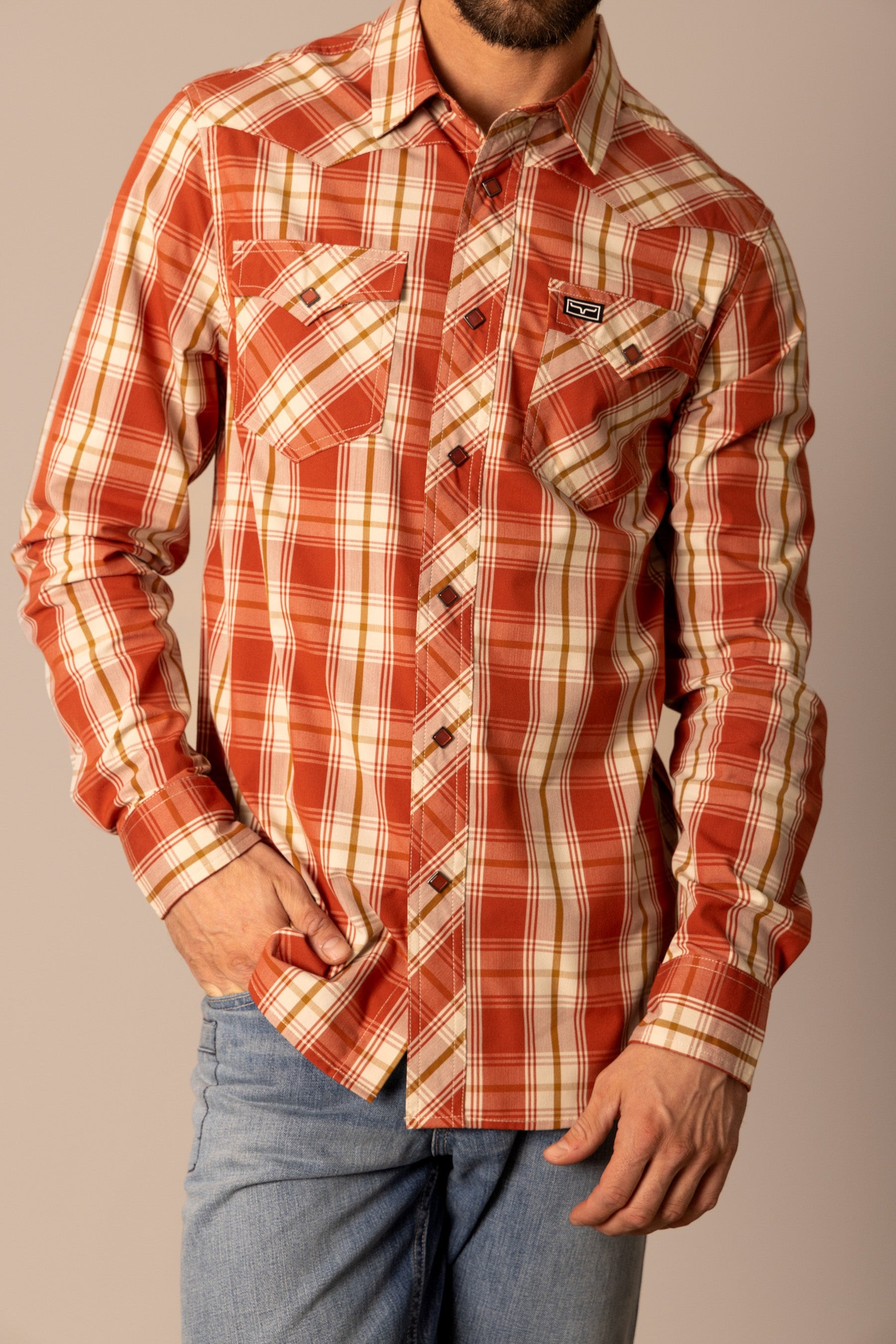 This western cut long sleeve shirt is a statement piece. Its large-scale plaid pattern commands attention without being overpowering. Designed with a keen eye for detail. the yoke. pockets. and front button placket feature a complementary cross-pattern. creating a cohesive and visually striking look. Built for both style and durability. this shirt is a testament to classic western craftsmanship. With Coolmax technology. the Frank is the perfect work shirt.