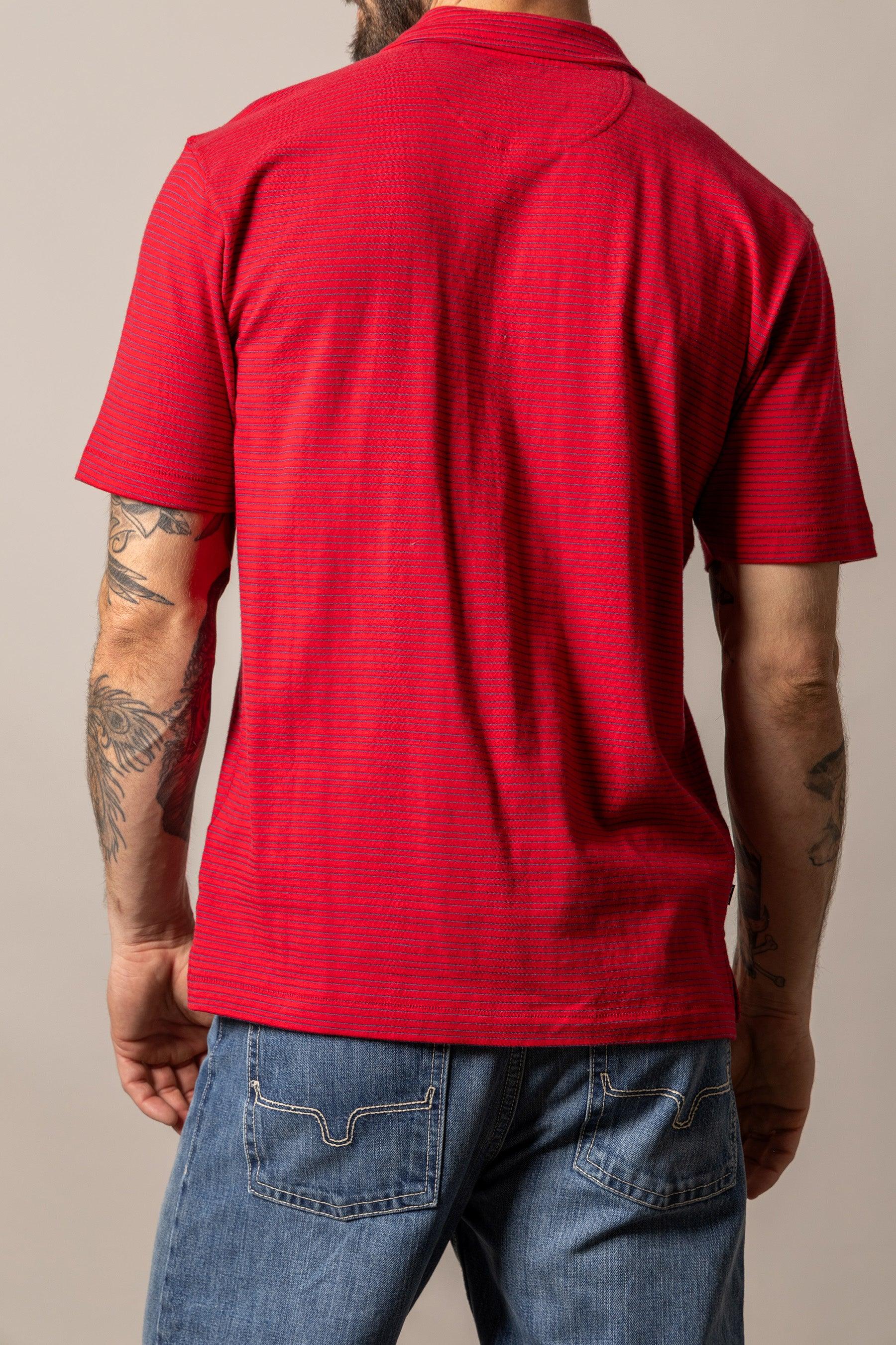 The Harlan shows off a striped pattern across comfortable. organic cotton. The open chest pocket at the front keeps essentials at hand. and the triple button neckline and double-row stitching ensure security. This polo can be worn for any occasion.