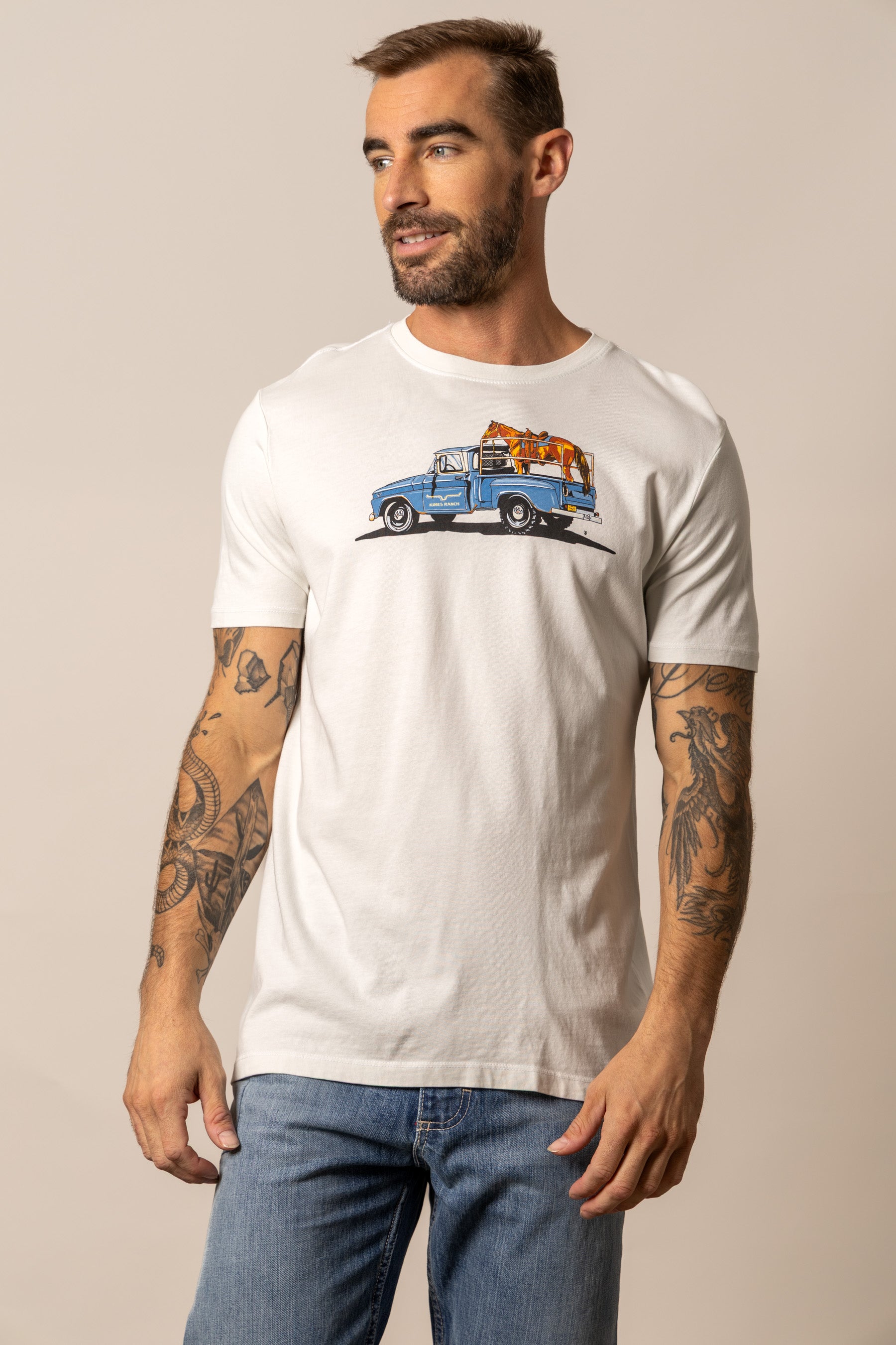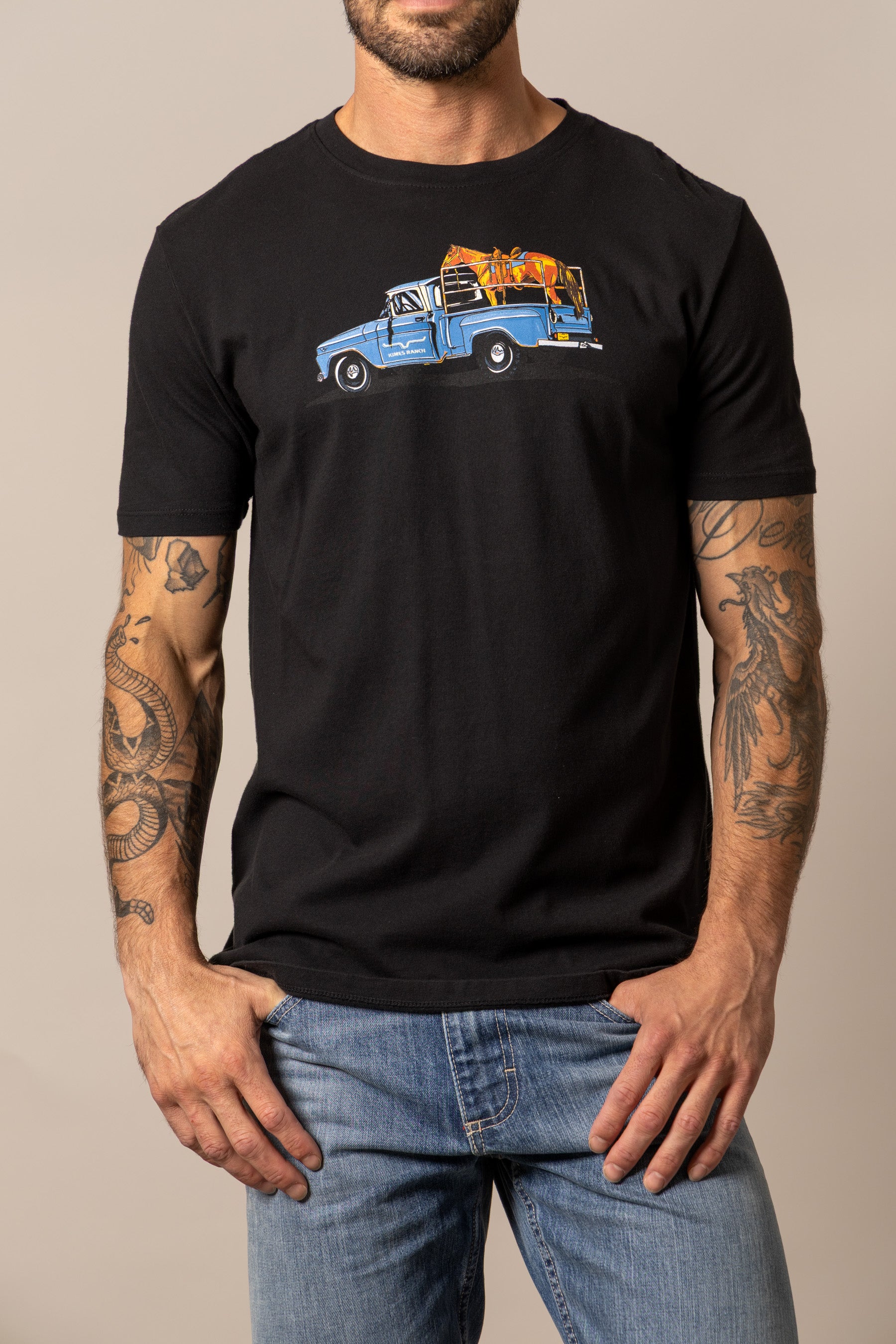 The Lucky B Truck Tee captures the charm. grit. and everyday beauty of ranch life. A Western scene worth wearing. With a vintage look and soft. broken-in feel. it’s made for early mornings. dusty roads. and anyone who knows there’s no place like home on four wheels.