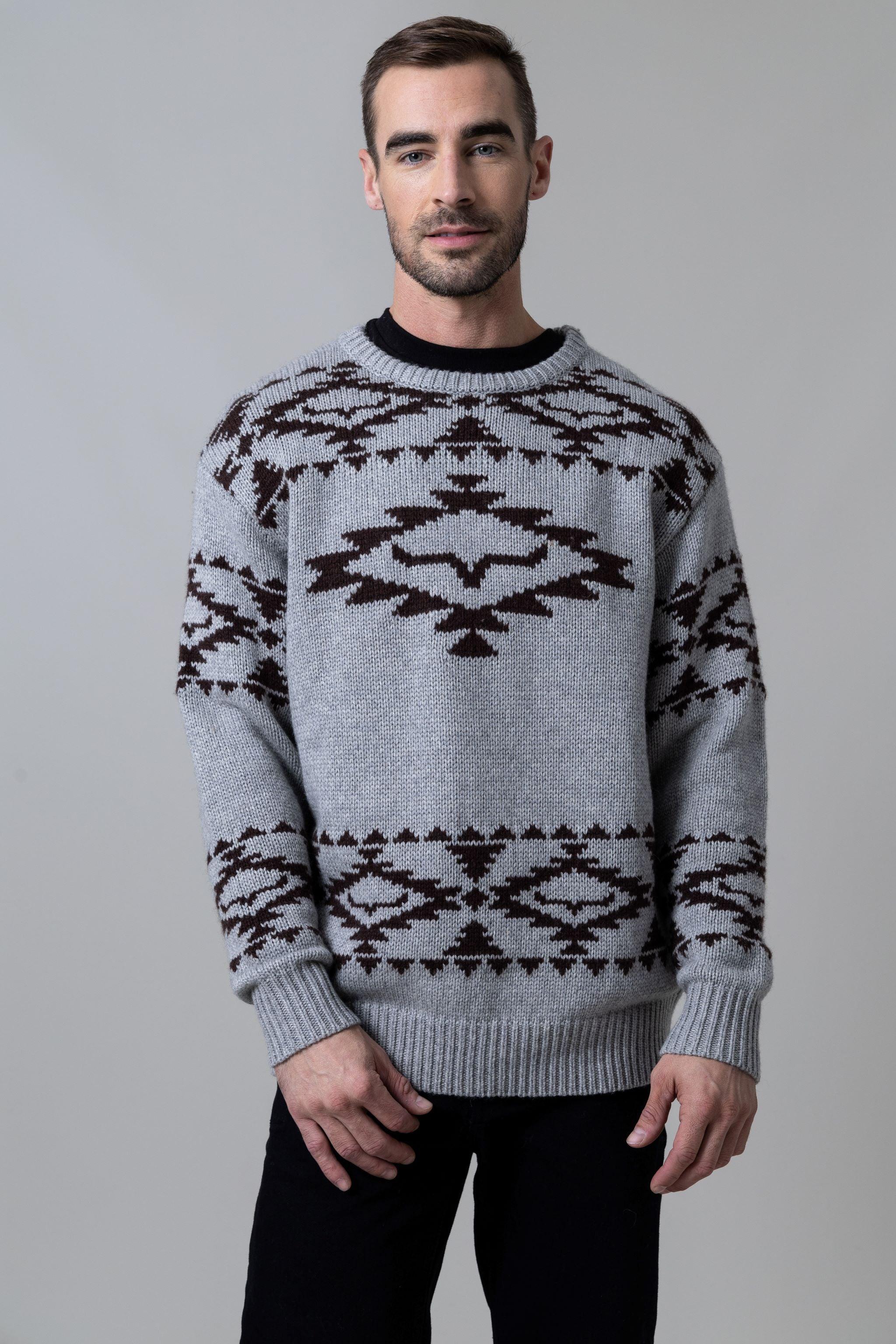A classic sweater. This timeless piece features a unique pattern with the classic horn at its center. adding a touch of Western charm to your look.