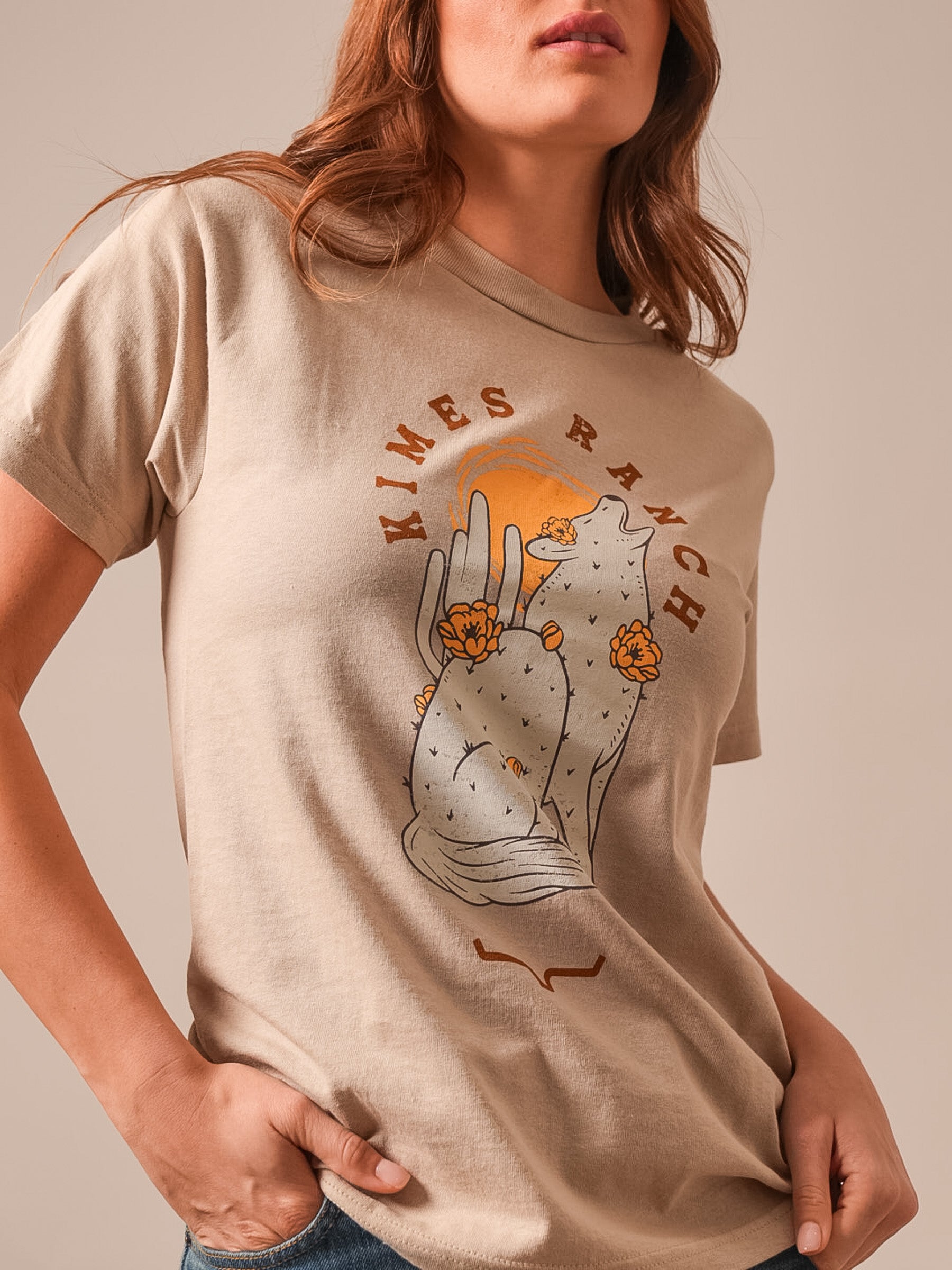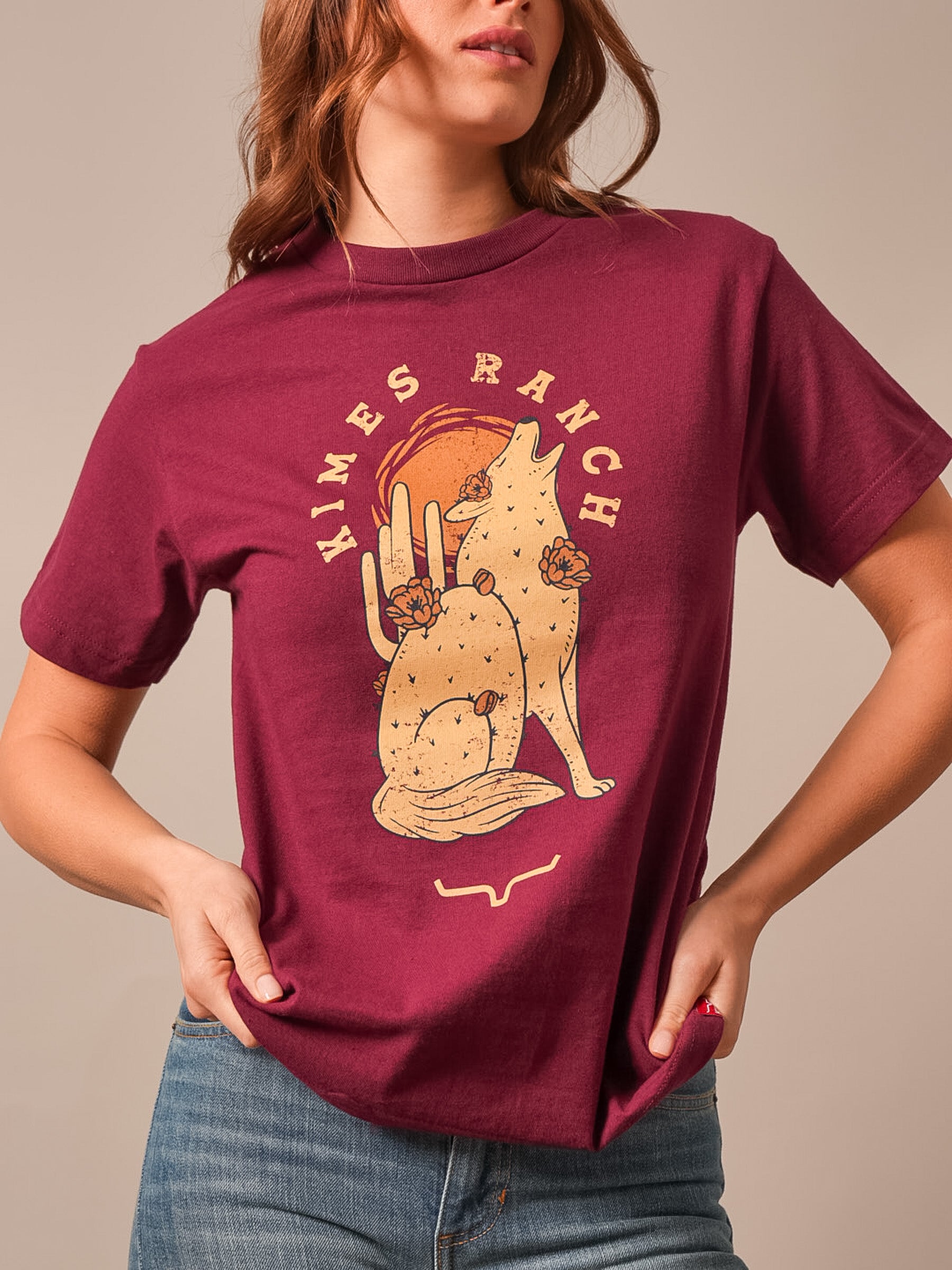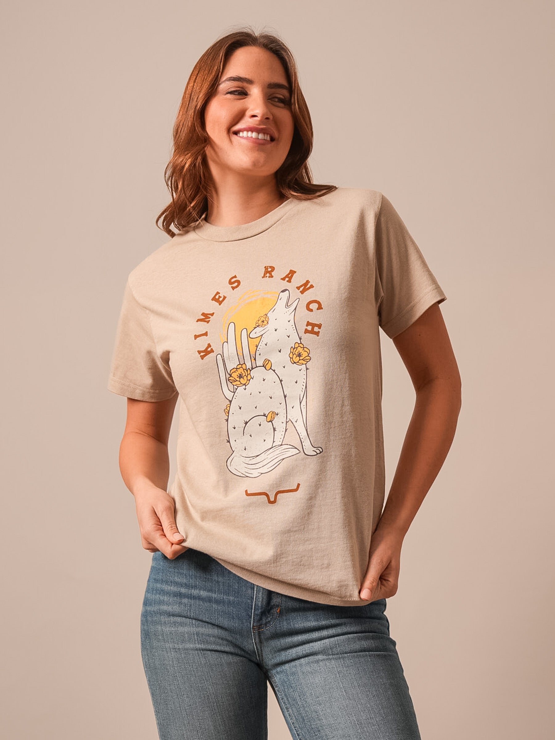 The Night Call Tee is inspired by quiet desert evenings. big western skies. and the call of a lone coyote. This soft. pigment-washed women’s tee features a striking coyote graphic that brings bold personality to an easygoing everyday fit. With a lived-in feel from the first wear and a relaxed. flattering shape. it delivers effortless cowgirl style made for slow sunsets. open roads. and nights spent under the stars.