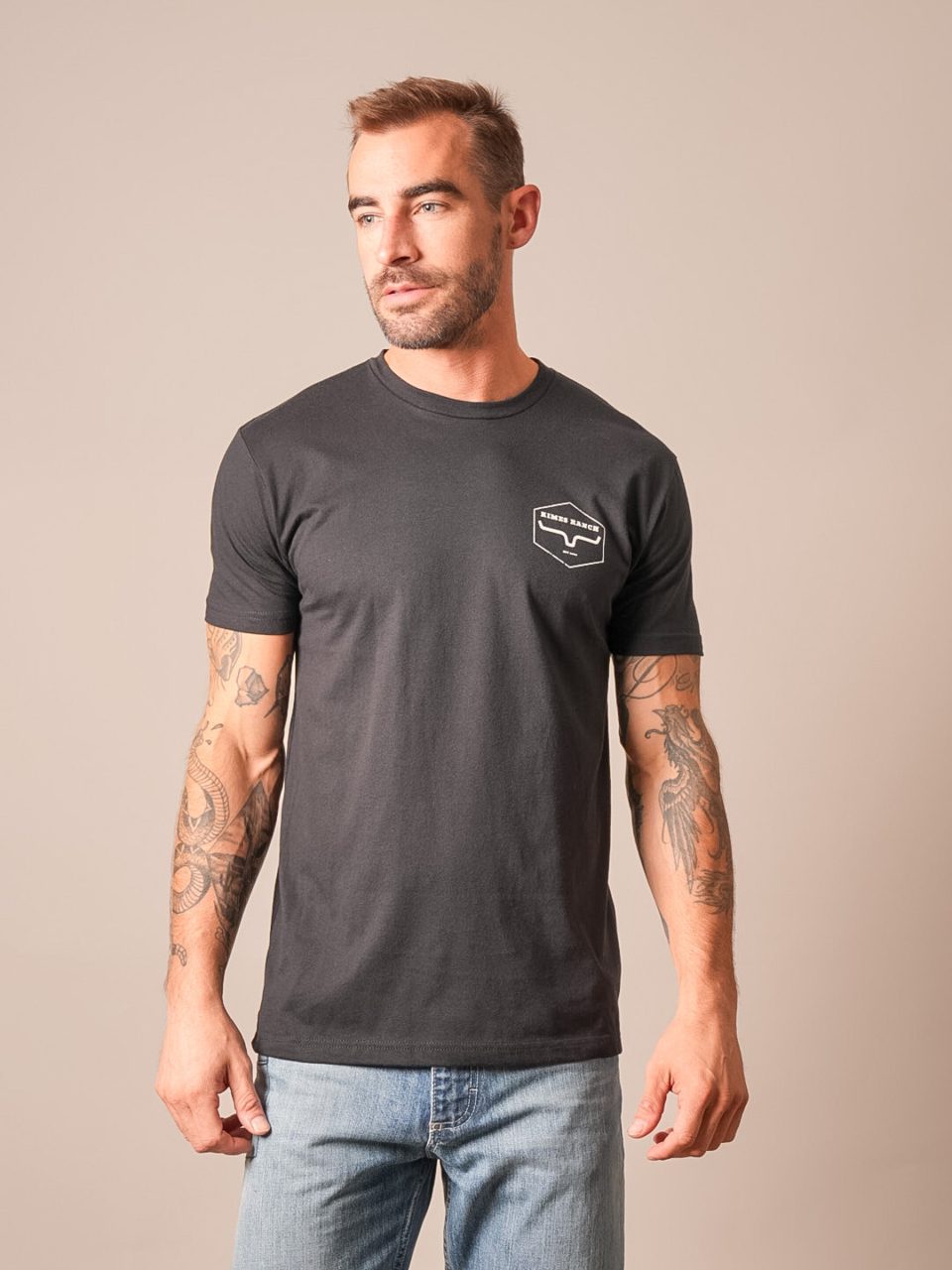 The Tredwell Tee is a timeless everyday staple that combines classic western attitude with an easy. modern fit. Featuring the signature Kimes Ranch logo across the chest. it keeps your style simple. confident. and unmistakably western. The soft. durable fabric is designed to feel great from the first wear and hold its shape through every wash. From long days in denim to casual nights out. the Tredwell brings clean. authentic ranch style to whatever the day brings.